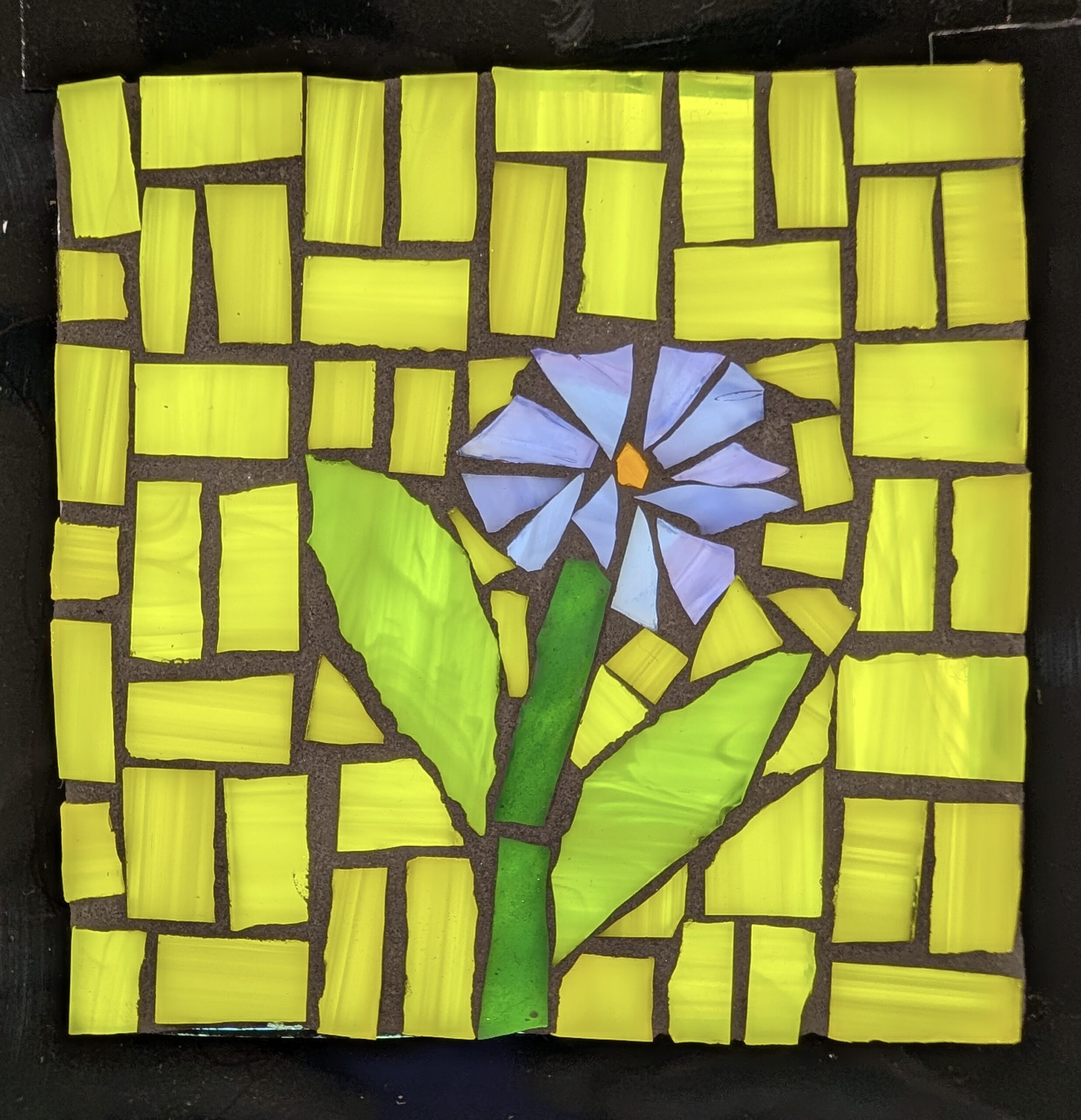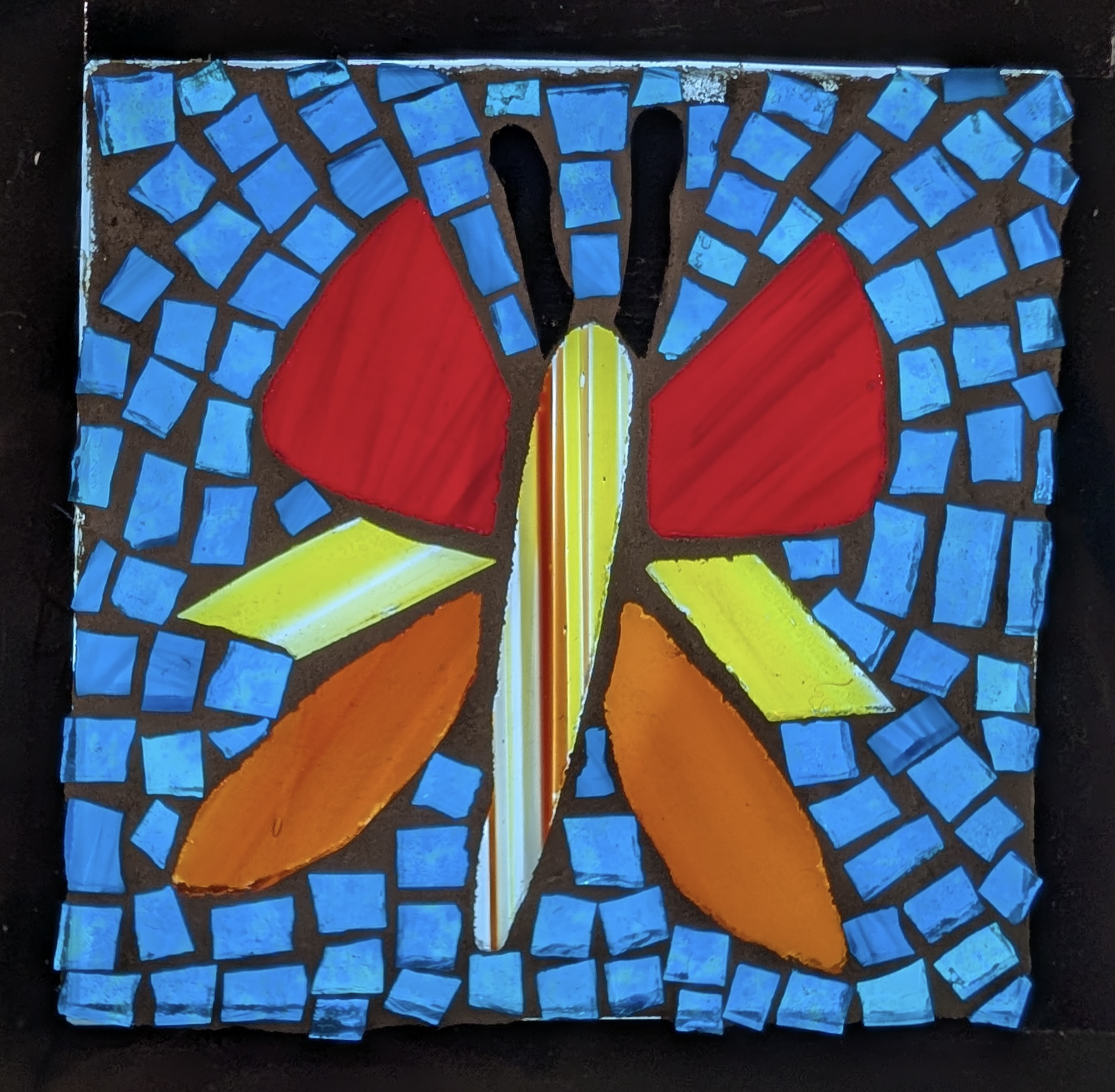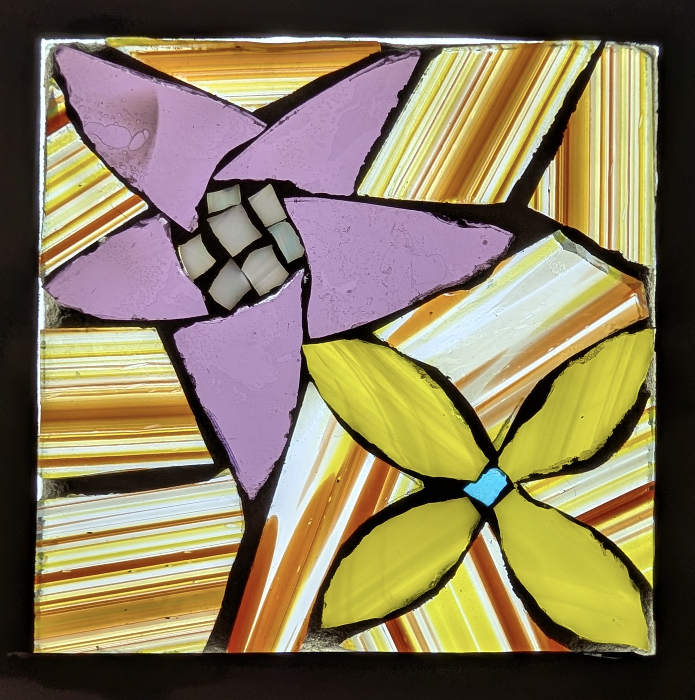 Glass-on-glass mosaics class is the art of using translucent opaque tesserae on a clear glass base to create a design that mimics stain glass without the use of lead. The class will allow the student to explore glass on glass design, glass cutting, and adhesive application. You will make two 4×4″ tiles that reflect and radiate beautiful rays of light. No experience necessary. All tools and supplies included.